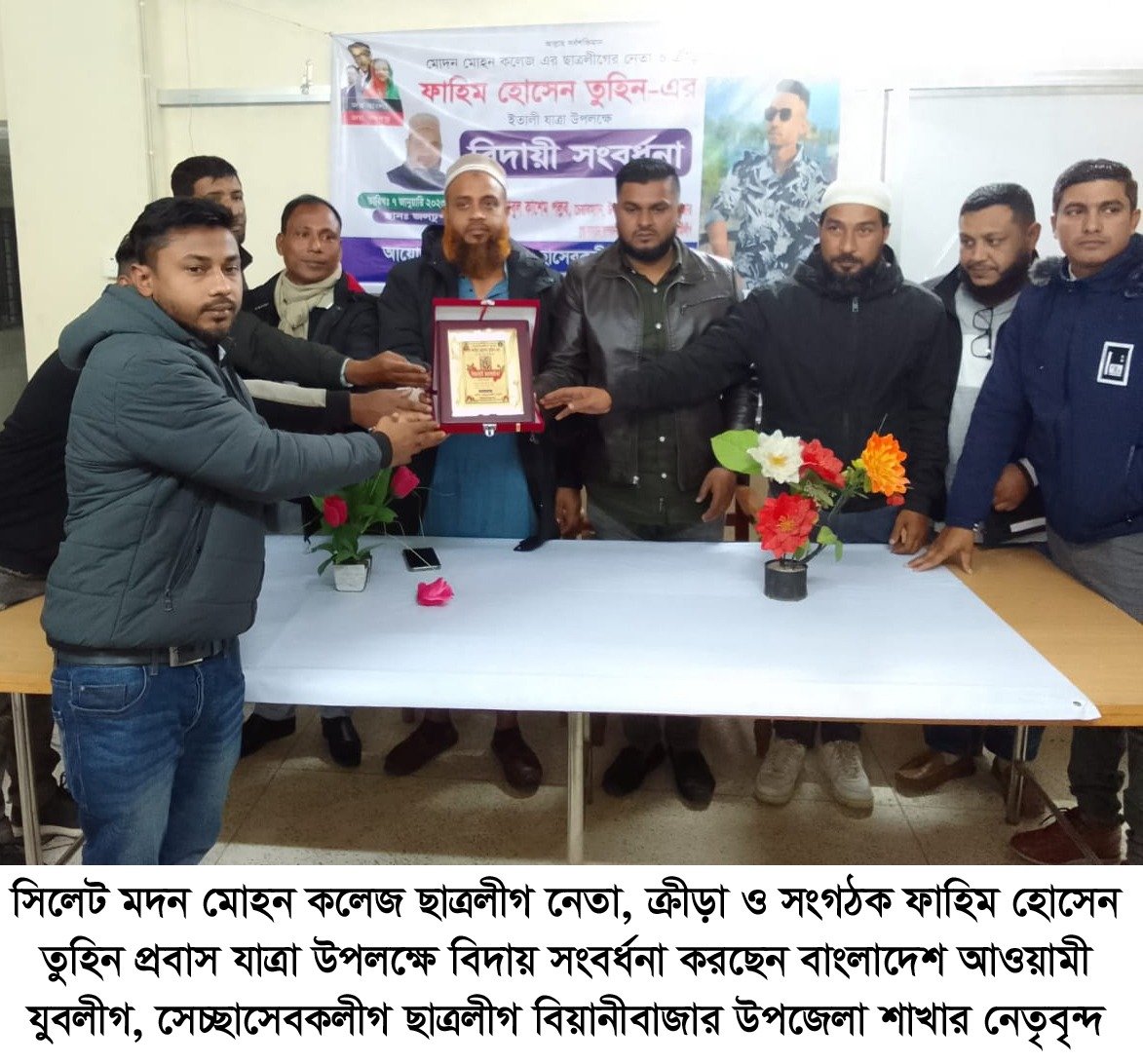 সিলেটের ছাত্রলীগ নেতা তুহিন প্রবাস যাত্রায় বিদায় সংবর্ধনা