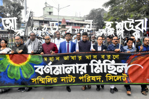 সিলেটে বর্ণমালার মিছিলে ভাষার মাসকে বরণ