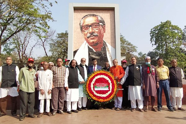 সিলেটে ঐতিহাসিক ৭ মার্চ উপলক্ষে বঙ্গবন্ধুর প্রতিকৃতিতে আ.লীগের শ্রদ্ধা