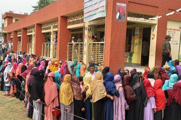 সরেজমিনে দেখা যায়, সকাল থেকে দীর্ঘ লাইনে দাড়িয়ে ভোট দিচ্ছেন ভোটাররা। সব কেন্দ্রে নারী ভোটারদের উপস্থিতি বেশি দেখা গেছে।