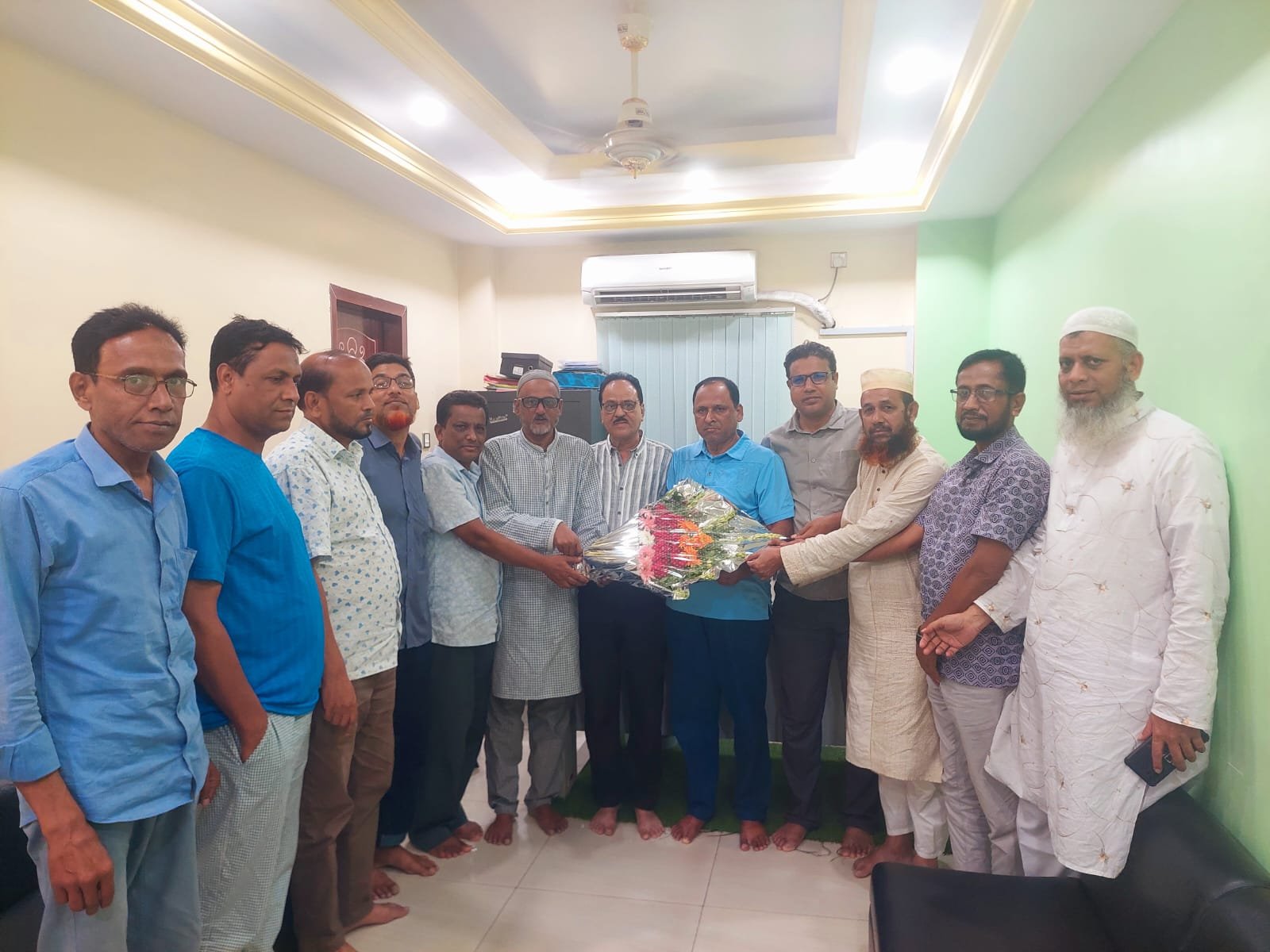 ৩মে বৃহস্পতিবার সমিতির অস্হায়ী কার্যালয়ে তাকে ফুল দিয়ে শুভেচ্ছা জানানো হয়।