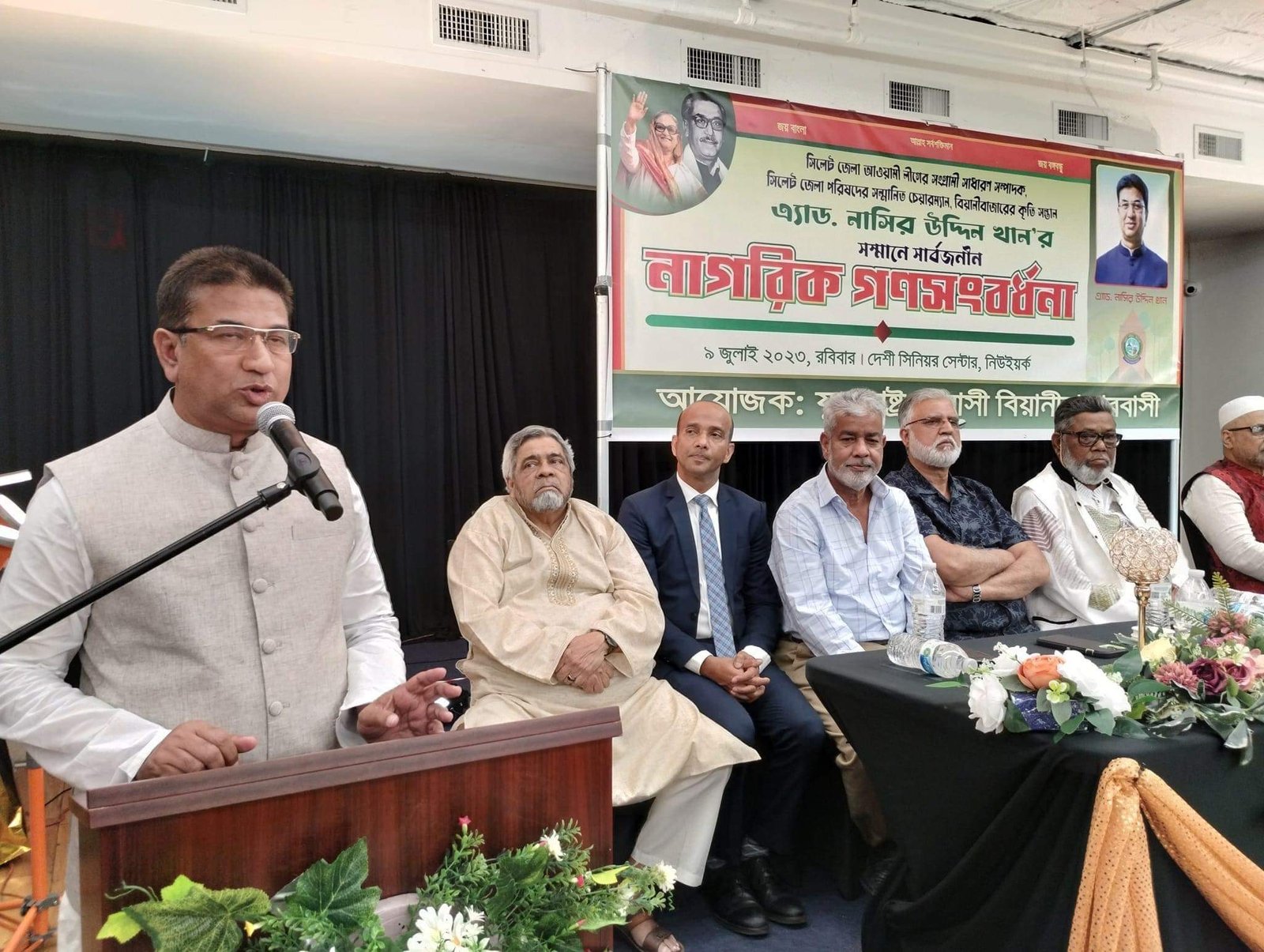 নিউইয়র্কে সিলেট জেলা পরিষদ চেয়ারম্যান নাসির খান সংবর্ধিত