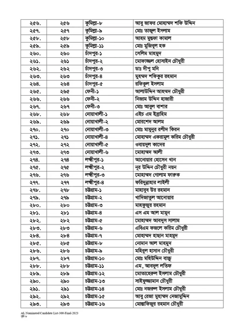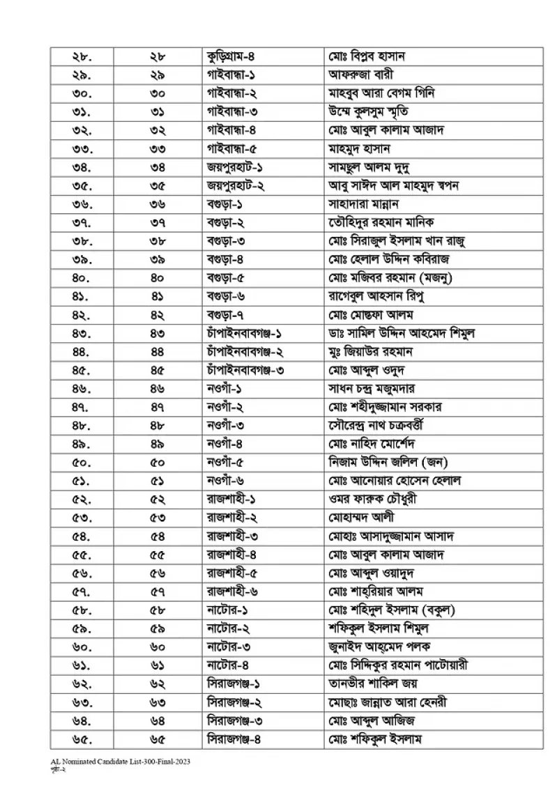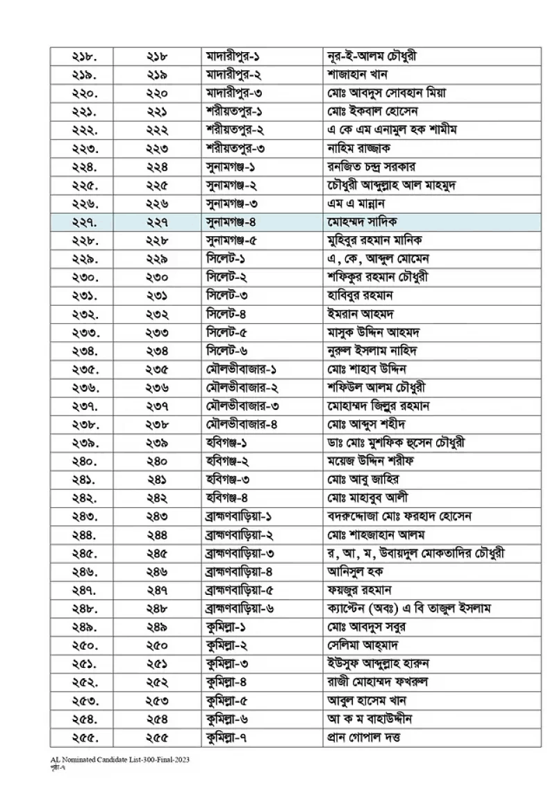 আওয়ামী লীগের মনোনয়ন পেলেন যারা