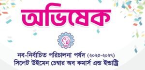 সিলেটে নারী উদ্যোক্তাদের সর্ববৃহত প্লাটফর্ম সিলেট উইমেন চেম্বার অব কমার্স অ্যান্ড ইন্ডাস্ট্রিজের নির্বাচিত পরিচালনা পরিষদের অভিষেক অনুষ্ঠান বৃহস্পতিবার (২৫ সেপ্টেম্বর) মেজরটিলাস্থ মানারা ফুড আইল্যান্ডের হলরুমে বেলা সাড়ে ১১টায় অনুষ্ঠিত হবে।