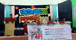 নবীন শিক্ষার্থীদের পক্ষ থেকে বক্তব্য রাখেন মোহাম্মদ আব্দুল মুগনি ও আফসানা মিমি।